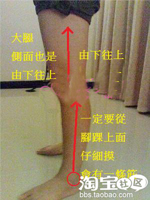 会有人问说为什么不刮小腿肉呢?但如果你不希望你的小腿变形的话请不要去尝试。我们只强调刮脚踝上面那条筋。