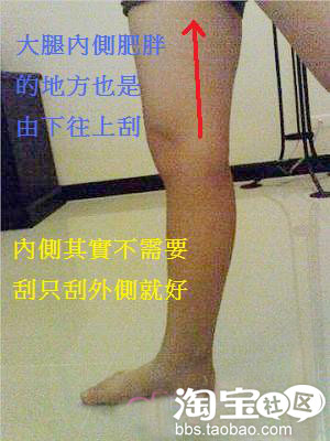 其实大小腿的道理都一样,一切也是都由下往上刮,刮的次数依个人喜好来订。