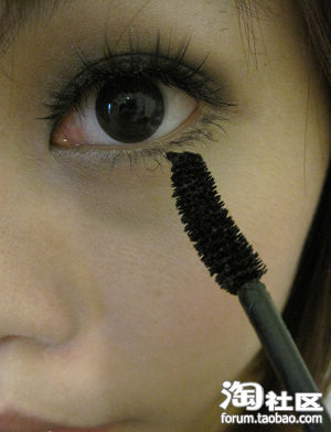 涂上下节毛膏 笔刷要拿直的刷 这样才会根根分明 有娃娃大眼的效果