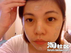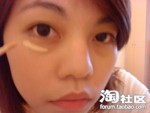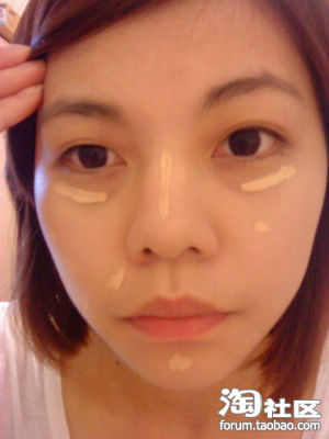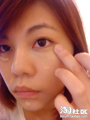 在黑眼圈鼻梁下巴还有痘疤部位涂上遮侠膏