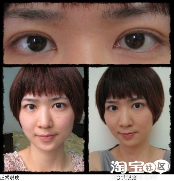 如果你是已经有双眼皮的人~就割一道弧形~重迭贴在原本双眼皮折的在线~