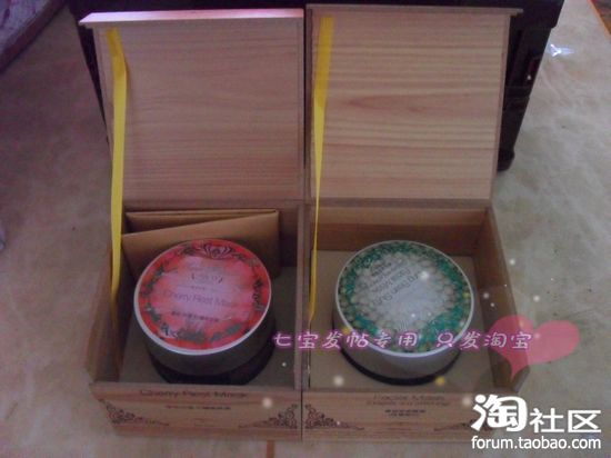 樱桃面膜的盒子颜色要深一些,绿豆泥的颜色浅一些