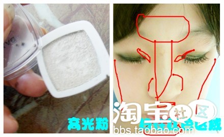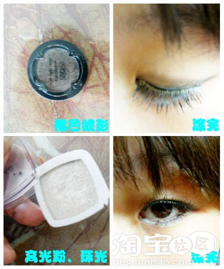 用褐色的眼影涂在眼窝处然后再用珠光粉涂在眼角处。这样会现眼睛大,嘿嘿