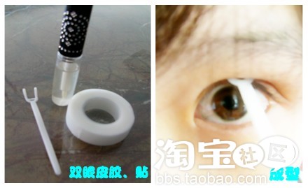 先把双眼皮胶涂在眼皮上。记住要涂三遍哦~ 这样会保持更持久、 干了以后再用工具成型。