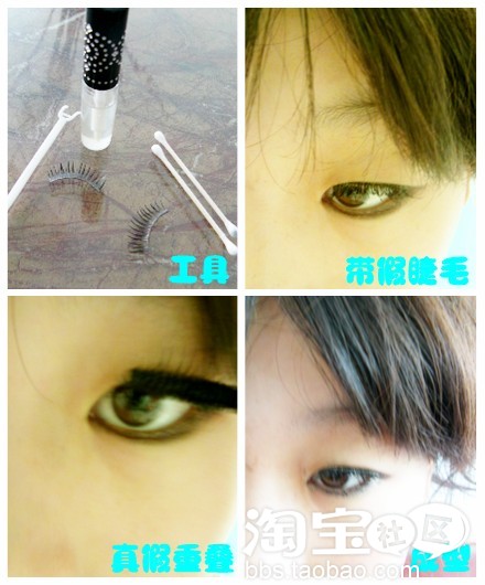 其实本人对假睫毛掌握的也不是很熟练、先用镊子等工具把假睫毛贴在睫毛根处,然后在用睫毛膏把真假睫毛合并。