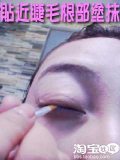 接下来涂睫毛膏,让真假睫毛连接在一起.