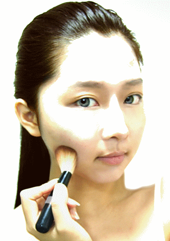 额头,t字区,下巴,分别用浅色修容粉扫一扫