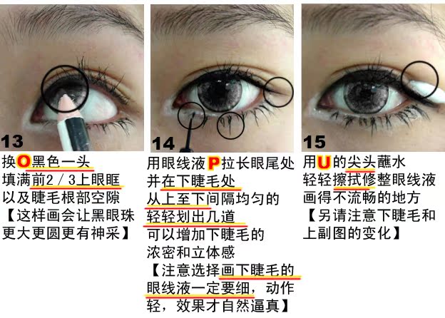 据雷雷的可靠消息(雷雷是我狠心的老娘啦,她离开我去日本时我才跟她小腿一样高,她回来时我比她都高了,当然我平凡的生长,我只是想借此表达她到底去了多久)日本的双眼皮大眼睛小朋友非常非常之少(她住的地方附近有幼儿园)基本都是柳叶眼睛(雷雷原话!人家都说柳叶眉她说柳叶眼睛),但是以十六七岁为界,基本上所有的女生都已经掌握一套针对自己的化妆手法,放学后节假日,甚至不太严格的校园里,只要有机会,她们都会把自己化妆得美美的!而日本mm最擅长的妆容重点——无疑就是眼妆拉!