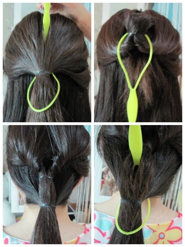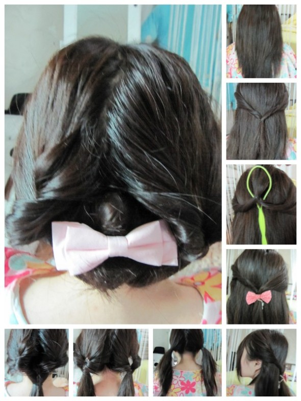 然后把最前面的发辫也都集中绑在后面余下的头发上