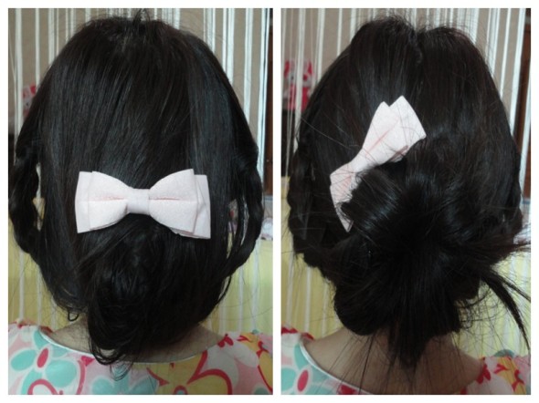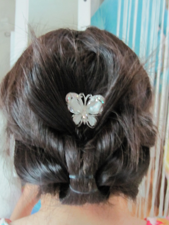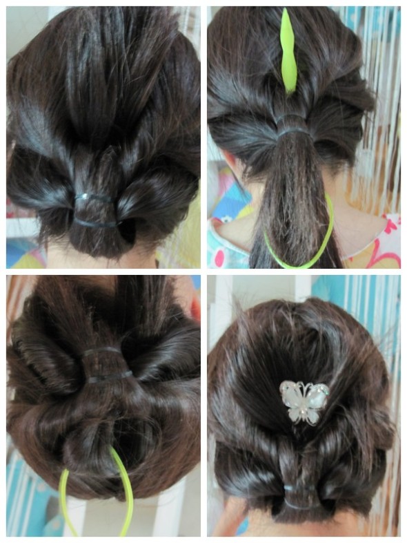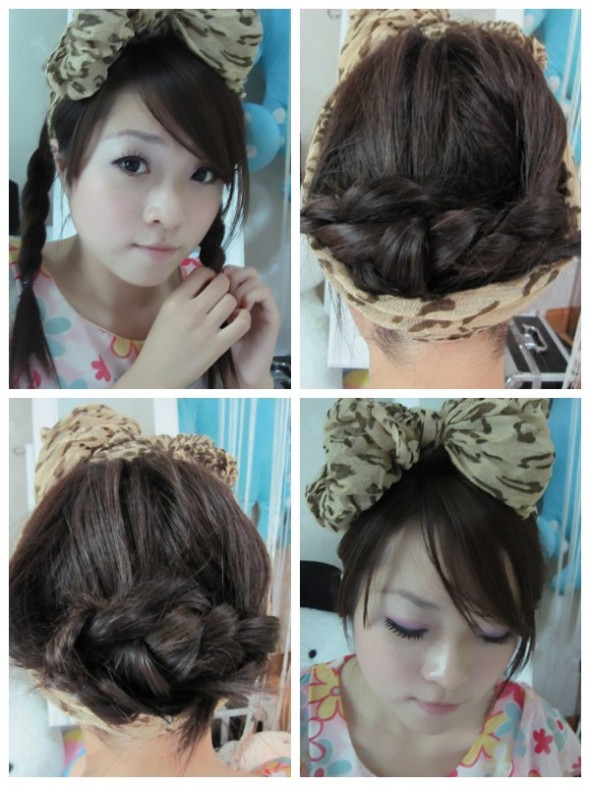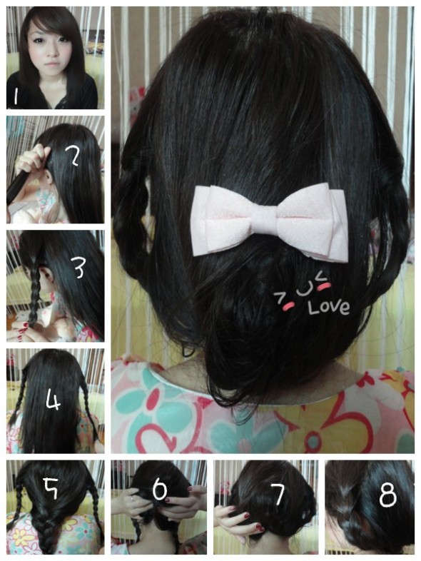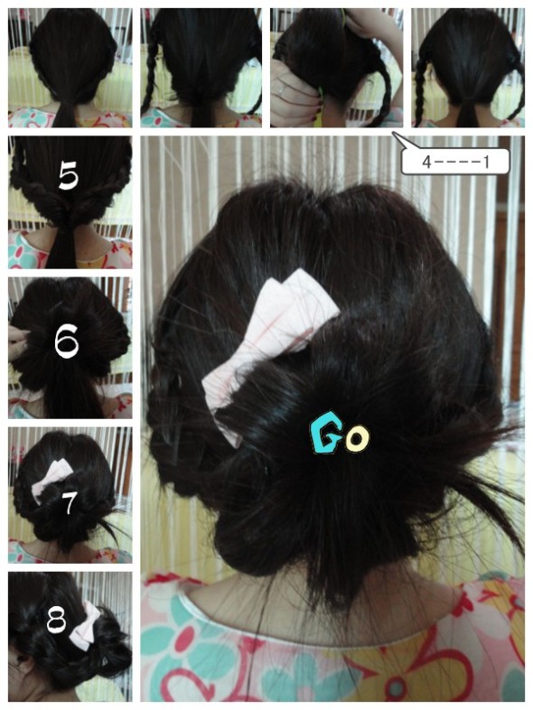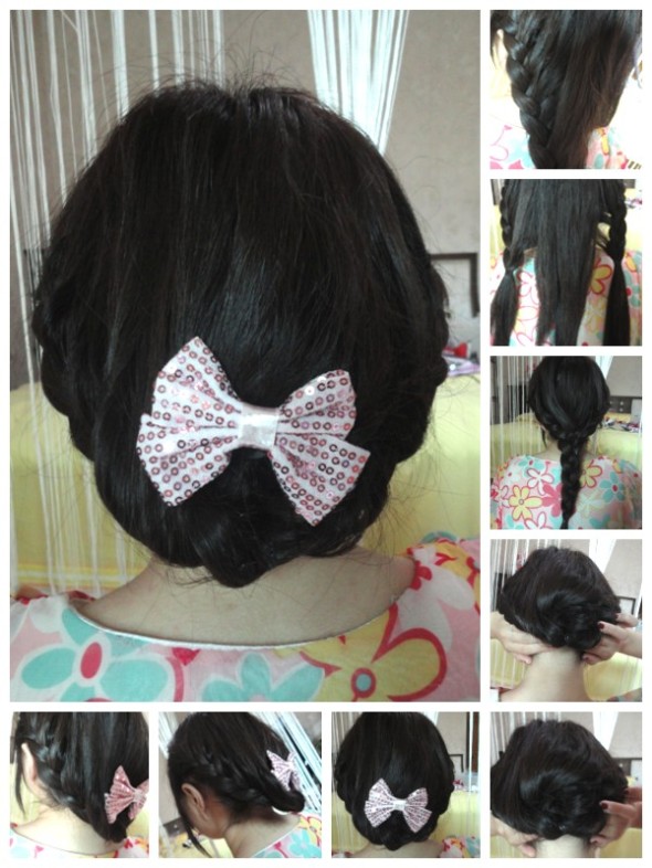 把最后面的发辫往内卷起来成一个大的发包固定好