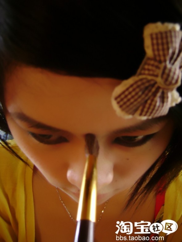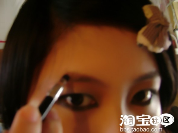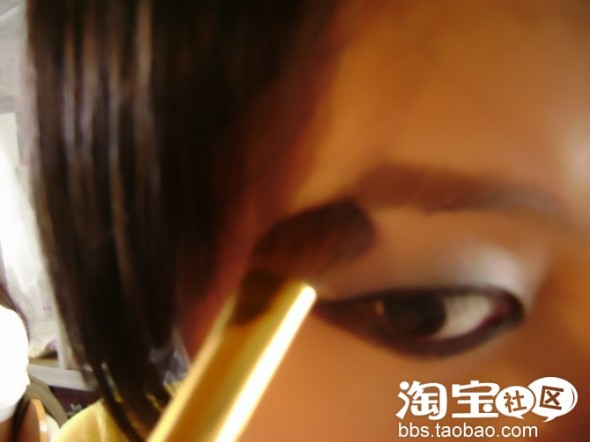 描的时候 可以拿眼影刷 沾取很少量(注意)的黑色或卡其色眼影粉 一点点地按眉毛生长方向刷 注意要柔和 不要粗壮 下手要轻之又轻