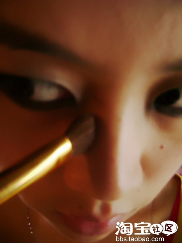 之后开始画鼻影 画出立体有型的鼻子也至关重要 用咖啡色眼影或灰色的扫于鼻翼两侧 要上接眉头 下至鼻孔上的肉 也是要淡淡地画 然后再用珠光白扫于鼻梁上 上至眉心下至鼻头 也可以顺带把人中 下巴也扫了 鼻子看起来有型又挺拔 关键是真的长了哦