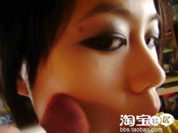 接着 画好眉毛后 就要用刷子轻刷几下 这样保证整齐又可以淡色 然后开始用橘红色腮红扫于下颔角处 制造阴影 也是要淡淡地 不可以太红 这样可以使脸蛋变小了点 还可以用很浅的粉红色腮红扫于颧骨高出的地方 粉粉的脸很可爱 看不出涂了腮红