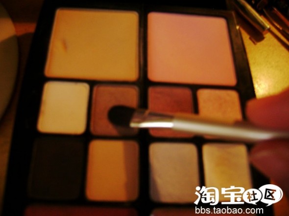 再沾取少量的咖啡色 扫于眼皮凹陷圈 制造深邃感