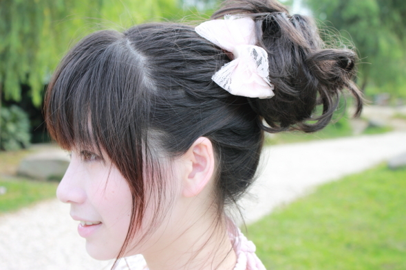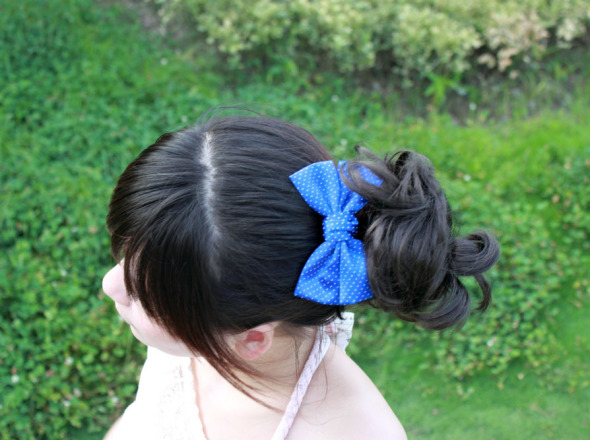 还有哟为了展示这个蝴蝶结的特色所以不用扎在发头