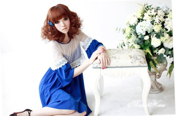 木木家 高贵公主点点半透网纱宝蓝色宫廷美裙