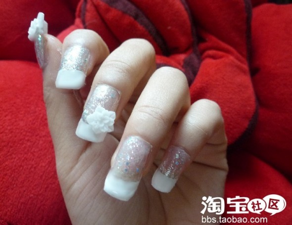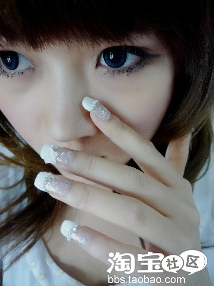 很漂亮,不过甲片很伤指甲,最好不用大动,楼主应该把底部稍稍休整一样,形和指甲底部一样,这样看上去自然一些