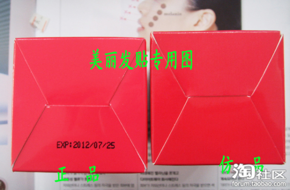 只看图片不仔细看的话是分不出来的,但是实物仿品的颜色比正品的要深点的 ,不仔细看灰常不好分的,小女在拍照时无意中看到灯光反射不同了,这就说明外盒的质地的不同,看来山寨老板也真是费山了啊
