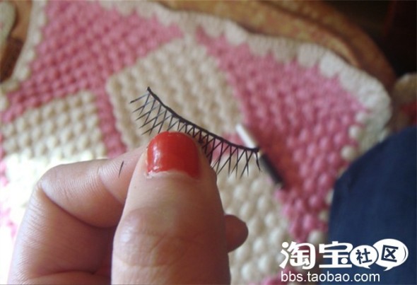 那个,睫毛上了胶水后,贴之前,记得弯曲假睫毛,不然不会太硬,比较好随眼线啦