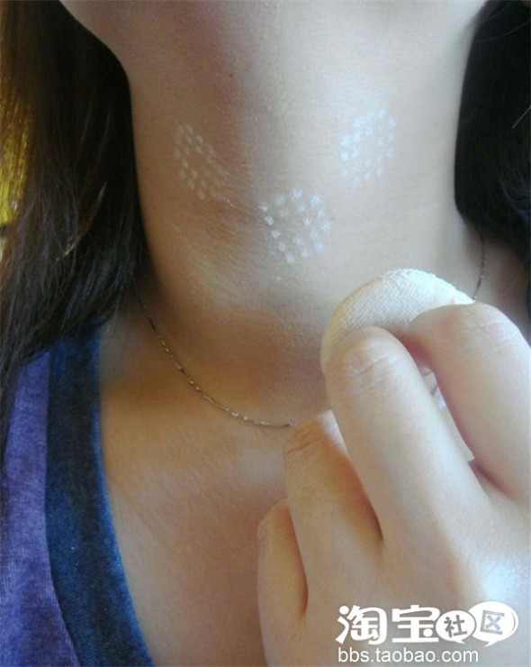 剩余不多了在往脸上擦。呵呵··就不会惨白了··切记,要和脖子的颜色均匀!