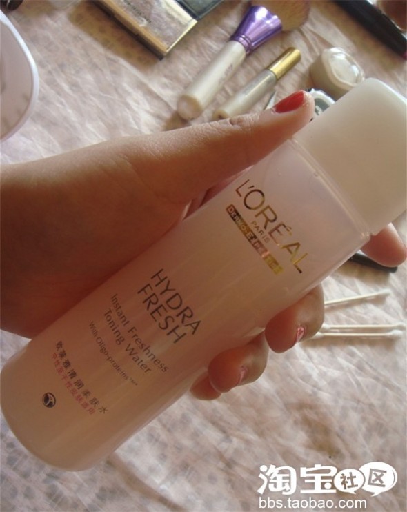 好了,戴好了以后,咱们开始擦水,擦乳液,眼霜,这些最基本的护肤程序,大家都会,我不