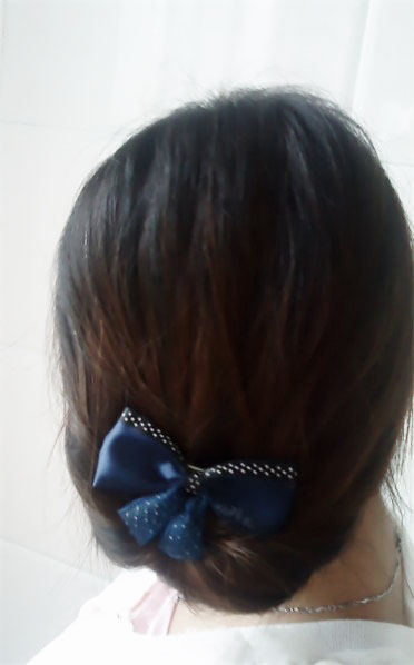 3.用黑色夹子固定住,要把发圈藏在里面的哦,不要跑出来见人哦。