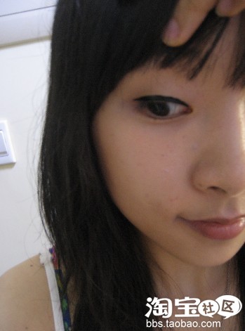 再加粗,眼尾稍稍拉下,不要太长。单眼皮的好处就是眼线画粗都不明显,根据自己的情况稍微画宽一些,窄了会全部吃妆,都看不出来画过眼线…