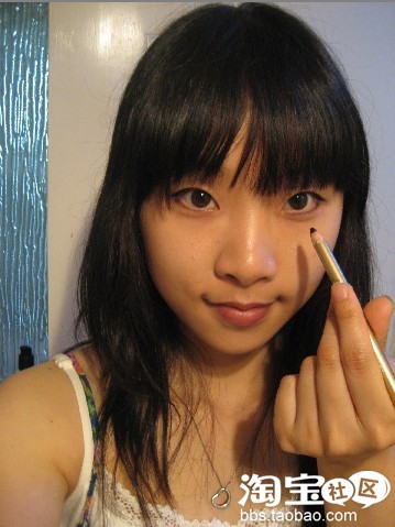 第五步 勾下眼线,眼尾可以画粗点,显得眼睛大 下眼线的方向同上眼线