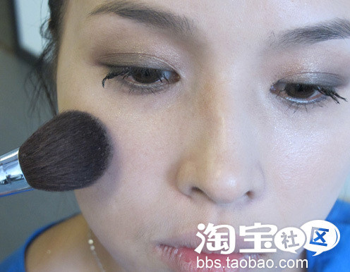 让整个妆容添加色彩。西西~~选择扑扑胭脂的甜橙色