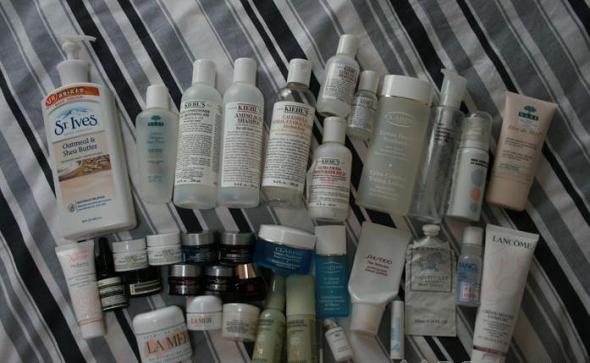 先说契尔氏的金盏花水和小黄瓜水,我最喜欢的是金盏花水,用过有10瓶了吧,非常喜欢,我都是每次去完角质或清洁完皮肤用来敷脸、收缩毛孔,夏天放在冰箱里用非常舒服,我没有痘,但是我LG 说这个对痘印很有效果,反正我们都挺喜欢。其实金盏花水有很多空瓶,前段时间搬家都扔掉了,要不一定更壮观。