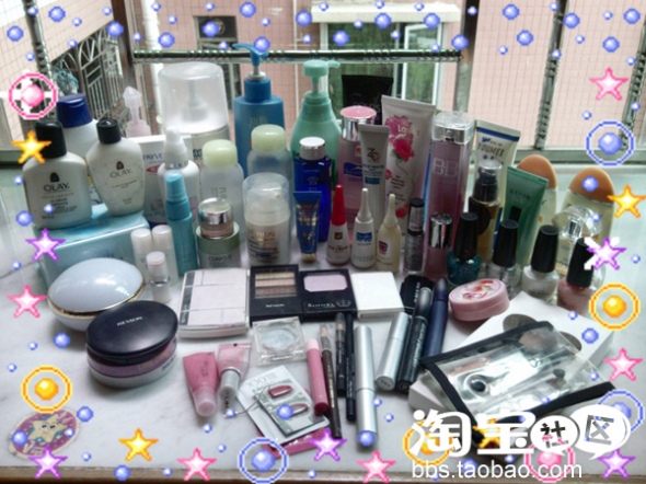 不找不知道,一找吓一跳,原来我的化妆品还真够多的。怪不得老爸整天说我,让我看看哪些不用的就扔掉,可我找了好久,全部都有用呢~!