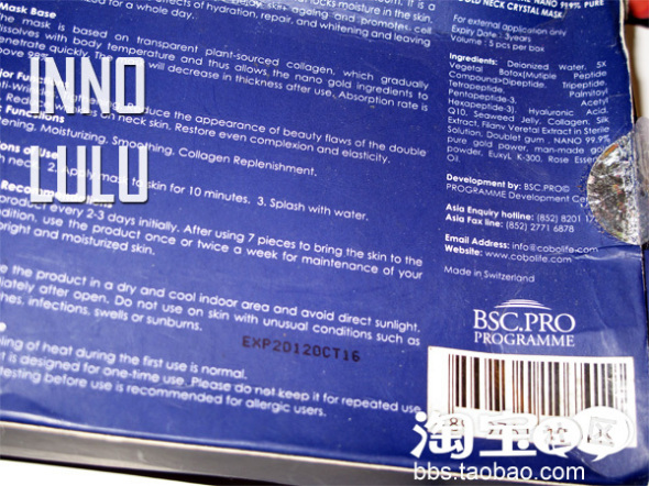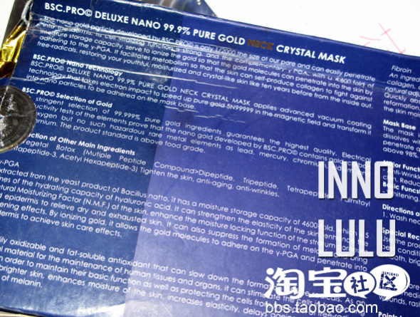 刚刚败下来的靓星馆去颈纹膜,原理是用botox, Q10, nano99%纯金,玫瑰花提取物等等来弄的。买了2盒,期待中。年龄太小者,就不要想太多了。