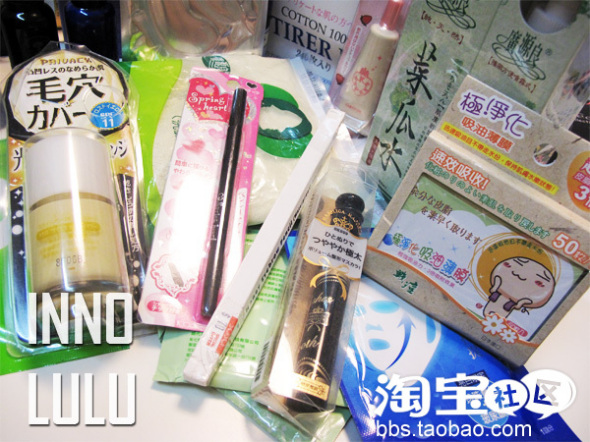 从左到右黑龙堂底霜,koji眼线笔,beauty tech眉笔,shisedo M&M的睫毛膏,还有广源良吸油纸。