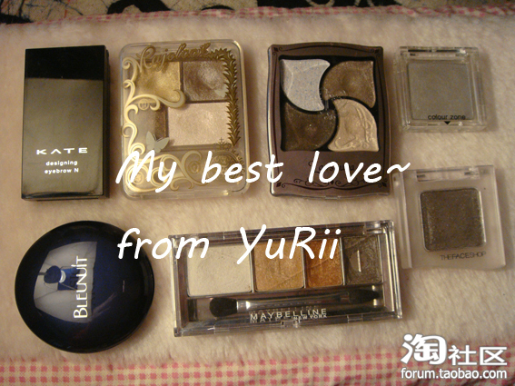 眼影3:乱七八糟的~眉粉和眼影,眉粉,KATE的很好 用~,眼影:恋爱墨镜和嘉娜宝的都很好,