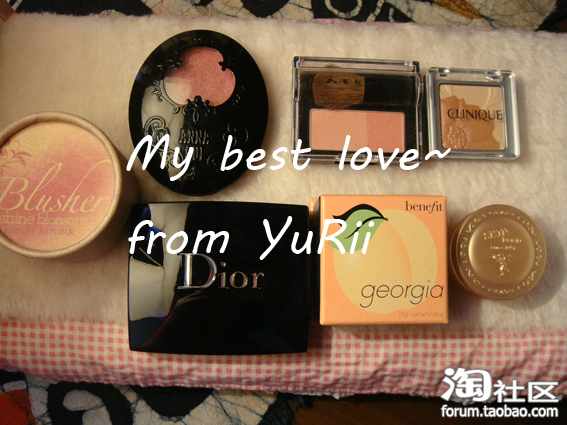 ~~~贝玲妃的蜜桃粉,可以丢掉了,完全不好用,倩碧的腮红,漂亮的不舍得用,SKIN FOOD的小腮红,挺可爱的~