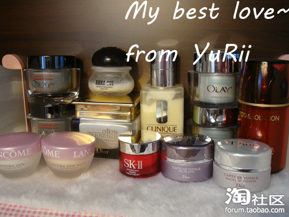 面霜类:玉兰油的还可以,安娜苏的调理霜冬天用很好,DIOR的花蜜挺好用,就是太贵了,倩碧的黄油:冬天干的时候和BB霜混在一起调和着用,梦妆的多效修护霜,平价天后产品,很好用又很便宜,~兰蔻的早晚霜,配合用不错,也能用很久,SK2的白金,老款了,喜欢这个瓶子,霜已经快用完了,用完了皮肤很嫩,