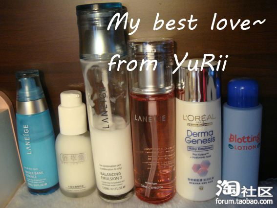 乳液类:兰芝的水酷精华:很不错,之后还会一直用的~~佰草集的调理油光乳液,没什么效果~郁闷~