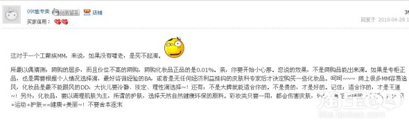 这位朋友,您好,我是桃子,首先,1,我没有食老,2,我都说过了,第一次去专柜买,第二次用过了,可以去网购,3,你如果没有慧眼,就不要评论我的东西真假的问题,你说我是价位不高的网购,我和所有加我QQ的美女都说过了,低于50%的折扣一定是假货,我不知道你从何看出我需要小心,这大概是因为你不知道世界上有一种商店叫免税店,也不知道香港在地图的哪个角落吧~如果是这样的话,我很同情你的知识范围狭小,最后,我在这里再次说明:发广告的店主,我是很欢迎的,抨击别人劳动成果的人,就赶紧回家洗洗睡吧,等你真的有能力来评价我的时候再来,我会在这里等你~最后谢谢你对我的支持~再也不见~