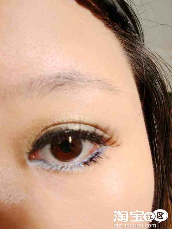 这里用1号珠光白打底,打满整个眼窝,是为了更显色。