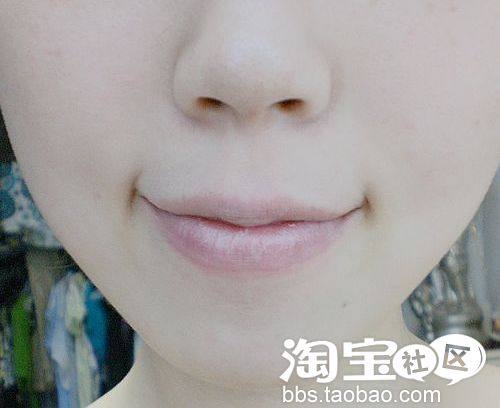 下面我往嘴上也拍了一点散粉,叫嘴唇淡些,可是干皮出现了,没事用唇彩就好