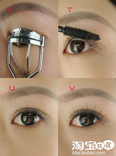 ST、夹睫毛、可以用打火机先加热一下睫毛夹,定型效果会很好。刷睫毛,Z型来回轻刷。