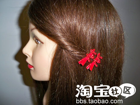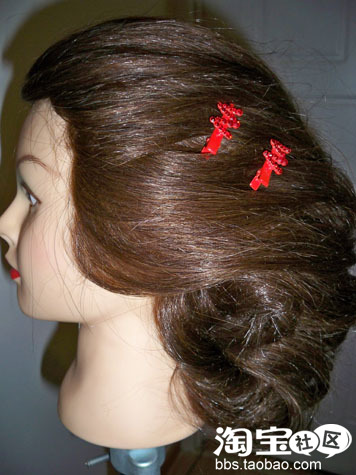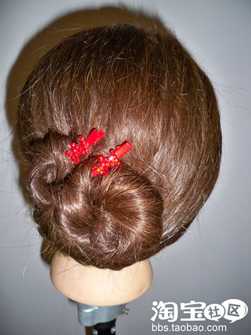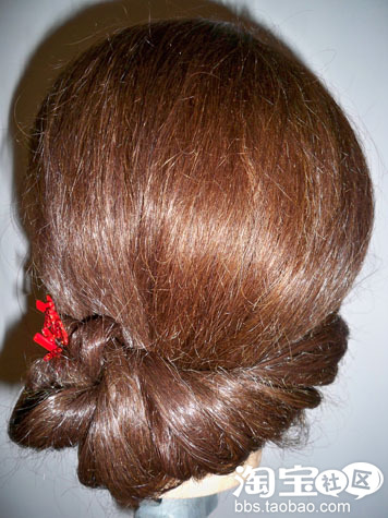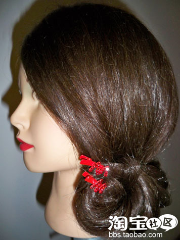 做法1:将头发疏通,再将两边发际线沿线做拧绳,到后脑勺后发际线处汇合集中,再将两根拧绳拧成一个拧绳,慢慢向左【或右侧】一个方向做拧绳,到耳垂下方做圈,用连个小夹子固定。