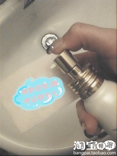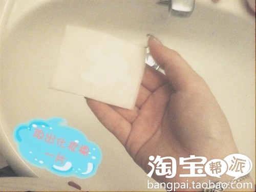 将卸妆乳/卸妆液挤于化妆棉上(硬币大小分量)