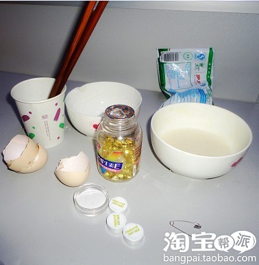 VE+鸡蛋清+面粉+牛奶+面膜纸+小碗+搅拌用的工具