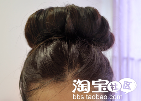 右边也是一样,拉上来固定住。然后带上发饰就完成了!