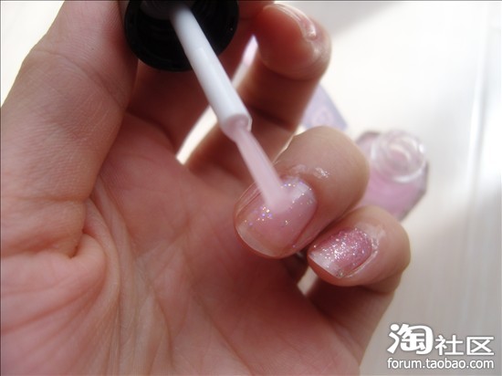 涂在涂过指甲油的指甲上 另外也可以涂在指甲勾缝处哈~~ 滋润哦~~ 还不容易让指甲油脱落 还亮亮的来~~