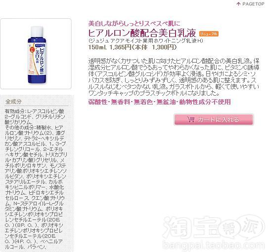 (请复制至新窗口打开,选择“化粧品事業”即可看到黑龙堂HIPITCH产品列目)