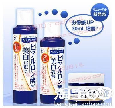分别为美白乳液、嫩白乳液和美白化妆水的图