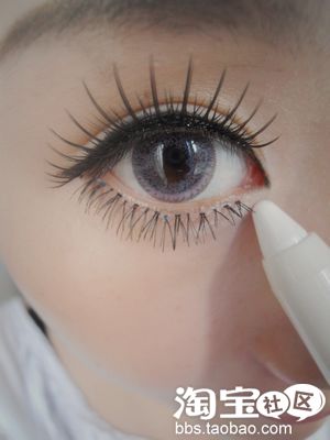 下睫毛一定要用白色的胶水哦,因为它干了会变车变成透明的,把下睫毛