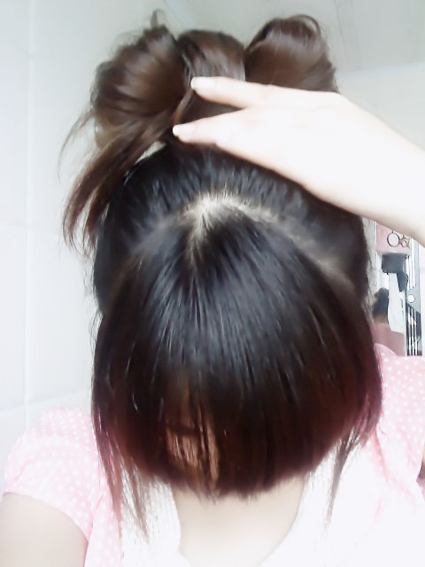 3.把余下的发尾放在中间 用黑色夹子固定。